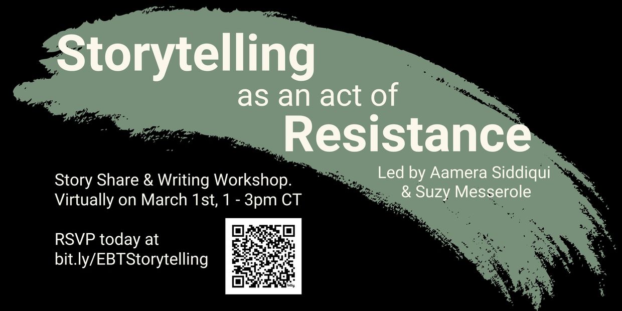 Being in community in our current climate is deeply important right now. Please join us for Storytelling as an Act of Resistance: Story Share & Writing Workshop. This will be a space for community members to come together, experience grounding, and engage in guided writing and story sharing centered on Resistance, Resilience and Healing.